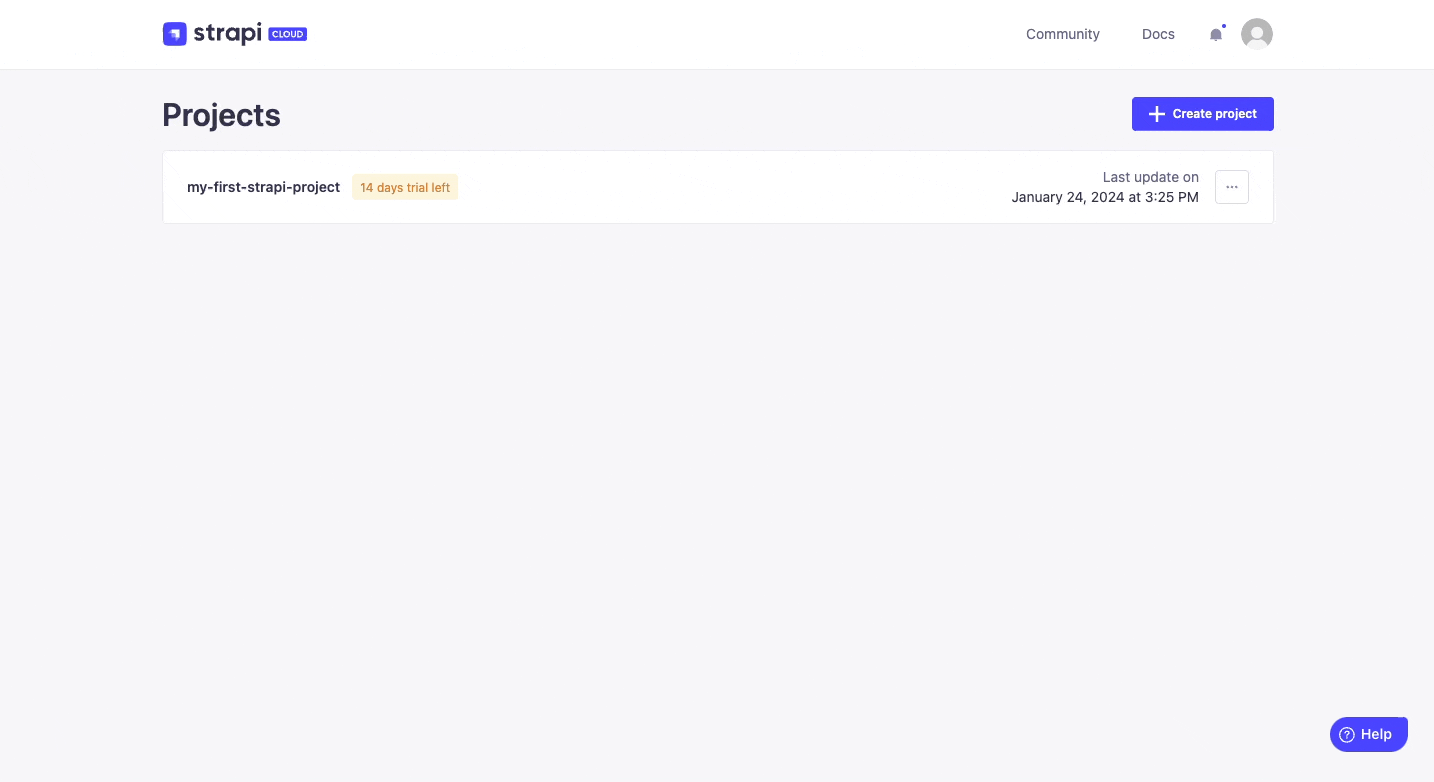 Now your project is hosted on Strapi Cloud and accessible online. Enjoy your 14-day free Strapi Cloud trial! You can learn more about Strapi Cloud by reading its dedicated documentation or proceed to part D to log in into your online Strapi project and add your first data from there.